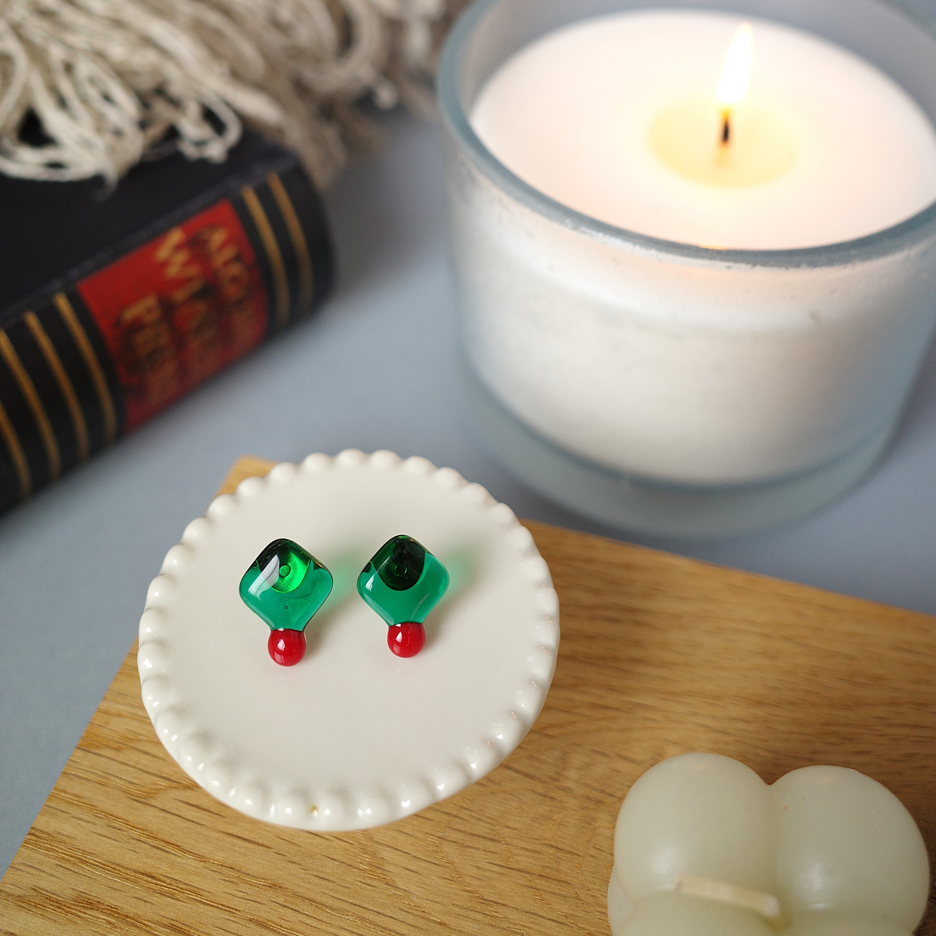 ヒイラギをイメージして、一点一点丁寧にガラスを熔かしてつくりました。